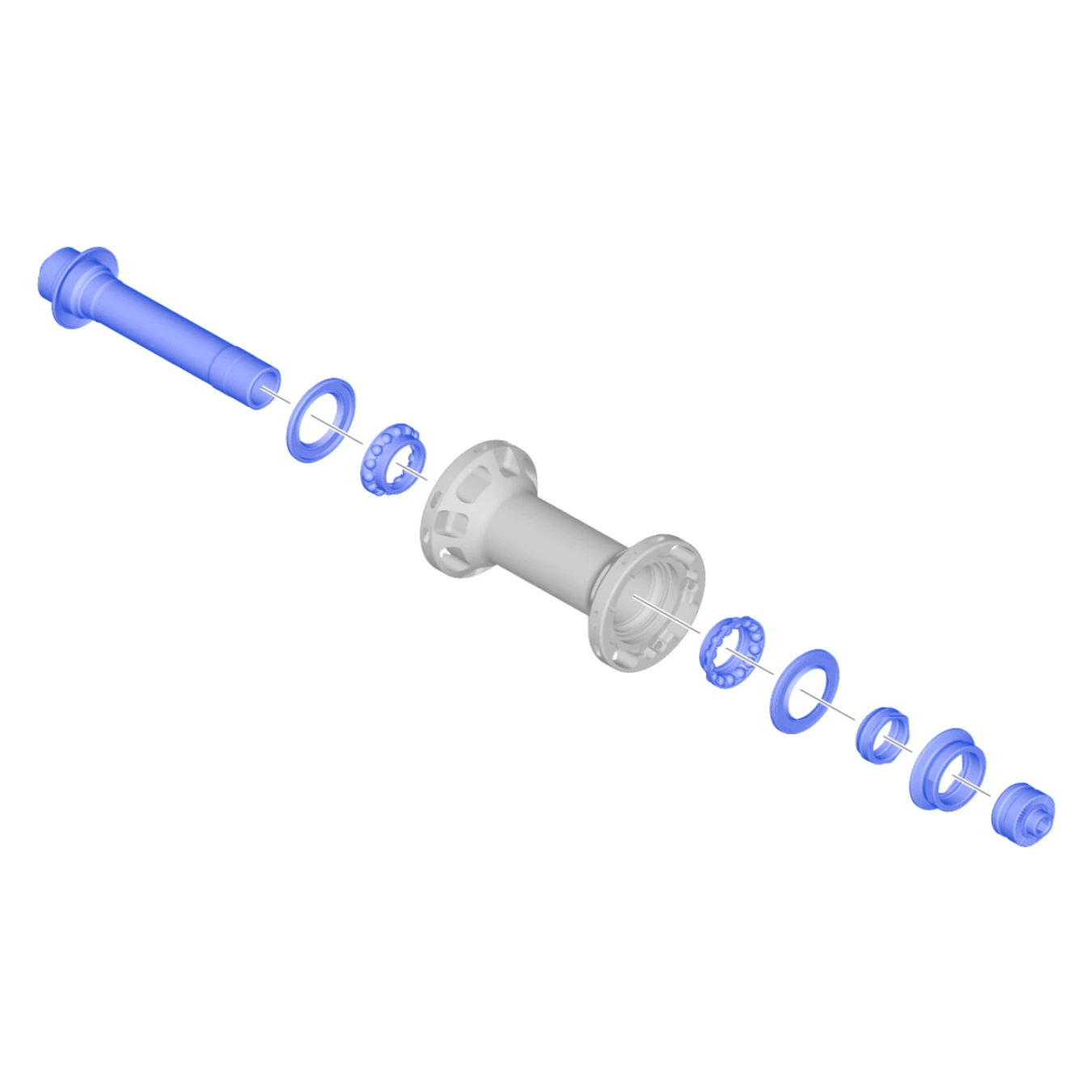 Complete as-unit voor de naaf van het Shimano Dura Ace WH-R9200-F voorwiel.