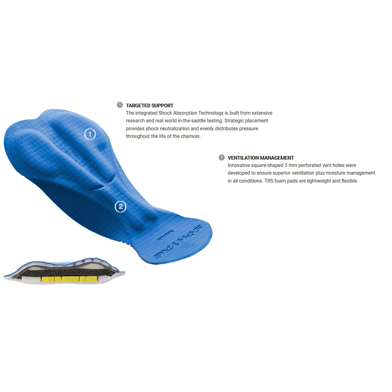- De meeste zitkussens zijn van onderaf opgebouwd. S-PHYRE is opgebouwd vanuit het lichaam, zodat het oppervlak het gladst is waar het het dichtst bij uw huid ligt. Schokdempende materialen zijn dicht bij het zadeloppervlak geplaatst om wrijving en drukpunten te elimineren.