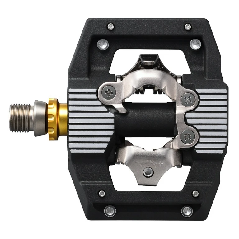 Ondanks hun stevige constructie hebben de duurzame en duurzame aluminium pedalen een slank pedaalhuis dat een lagere zoolhoogte en een grotere afstand tot obstakels mogelijk maakt. Ondertussen zorgt het bredere contactoppervlak voor meer stabiliteit en een betere controle over de fiets, vooral in combinatie met de MTB-schoenen van de Shimano AM-serie.