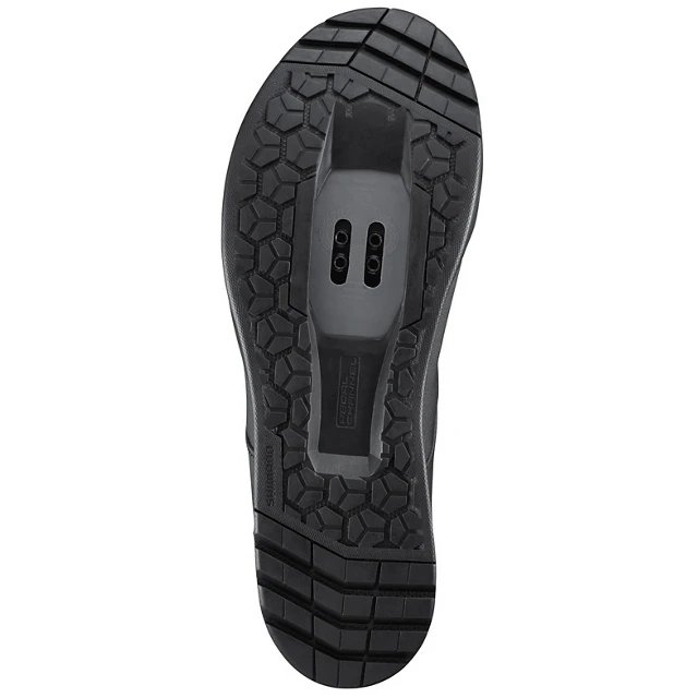 - Grippy SHIMANO rubberen buitenzool met teen- en hielprofiel verbetert de stabiliteit bij het inklikken en bij het lopen.