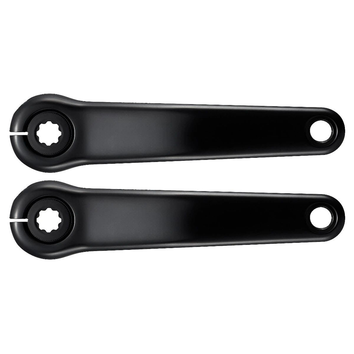 De robuuste Shimano STePS FC-E6100 crankarmen met hun niettemin elegante ontwerp hebben een smalle, symmetrische Q-factor van 180 mm en zijn ontworpen voor montage op de splined 24 mm as van de STePS E6100 aandrijving. Compatibel met kettingkasten.