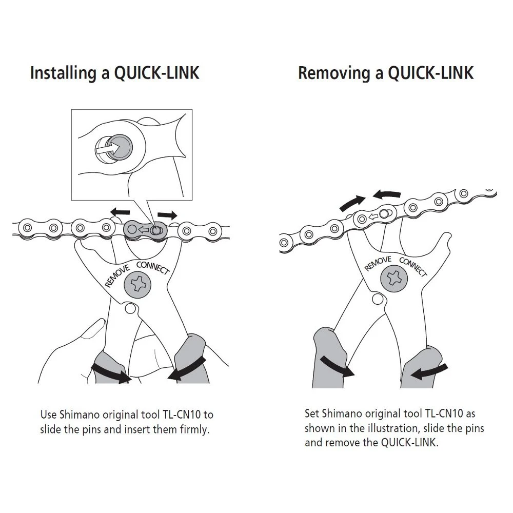 De Shimano TL-CN10 kettingslot tang maakt handmatige montage en demontage van Quick Link kettingsloten mogelijk. Het gereedschap heeft een comfortabel en gemakkelijk te hanteren handvat.